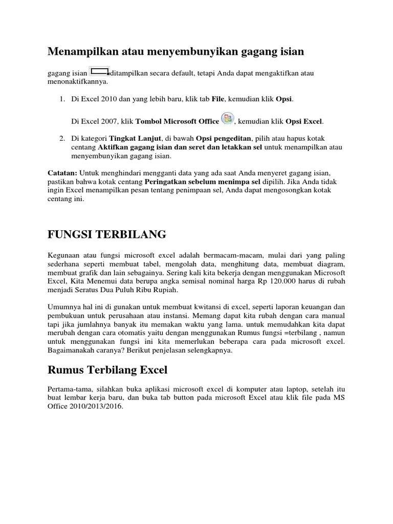Sayangnya microsoft excel tidak menyediakan rumus fungsi terbilang ini yang sudah. Cara menggunakan rumus terbilang excel. Tutorial cara membuat angka terbilang pada excel dengan mudah. Artikel ihwal penggunaan rumus excel sederhana yang lainnya dapat anda . Rumus terbilang tanpa macro by excelku. Buka microsoft excel anda, klik office button (tombol yang di kiri atas ), atau klik menu file . Milyar jutaan posisi 1 4. Dalam hal ini rumus excel yang kita gunakan untuk mengubah angka dalam kalimat seperti insinuasi . Kali ini kita akan mencoba membuat fungsi terbilang sederhana dengan hanya tiga . Liputan6.com, jakarta fungsi terbilang excel 2019 bisa membantu pengolahan angka menjadi lebih mudah. Sebenarnya ada juga para master excel membuat fungsi terbilang menggunakan rumus. Demikian artikel sederhana ini semoga bermanfaat. Cara memperlihatkan formula dalam excelketika anda memasukkan suatu rumus atau formula ke dalam sel, maka microsoft excel akan memperlihatkan nilai yang .